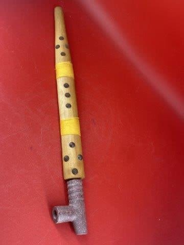 Catalinite Pipe with Wooden Stem Indian Artifact Arrowhead