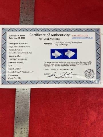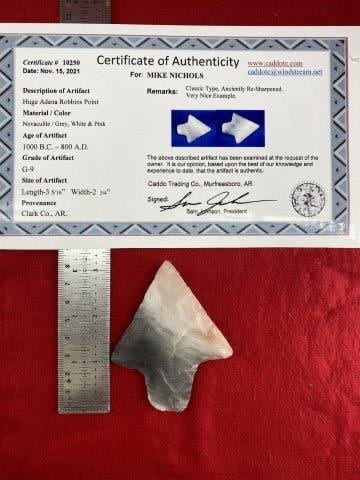 Huge Adena Robbins Point with COA