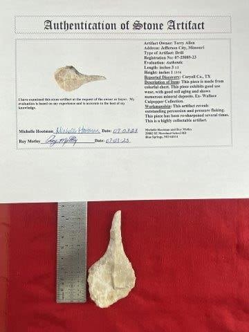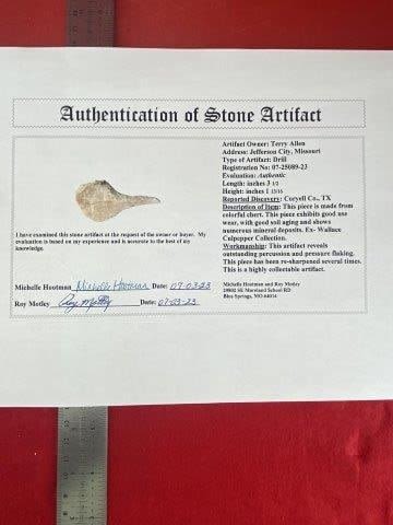 Please see picture for measurement. It is from Coryell County Texas. Ex- Wallace Culpepper Collection. These artifacts are from multiple collections from around the United States. Comes with a Roy Motley Certificate of Authenticity. KEY WORDS: NATIVE AMERICAN INDIAN ARTIFACT ARTIFACTS ARROWHEAD ARROWHEADS MISSISSIPPIAN QUAPAW CADDO POTTERY COINS MORGAN DOLLAR PEACE DOLLAR SILVER COINS