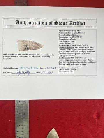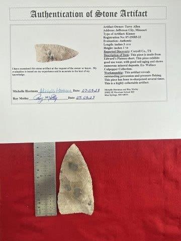 Please see picture for measurement. It is from Coryell County Texas. Ex- Wallace Culpepper Collection. These artifacts are from multiple collections from around the United States. Comes with a Roy Motley Certificate of Authenticity. KEY WORDS: NATIVE AMERICAN INDIAN ARTIFACT ARTIFACTS ARROWHEAD ARROWHEADS MISSISSIPPIAN QUAPAW CADDO POTTERY COINS MORGAN DOLLAR PEACE DOLLAR SILVER COINS