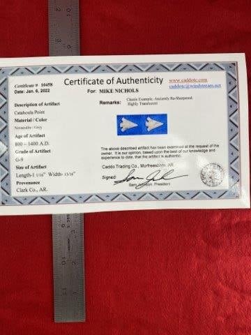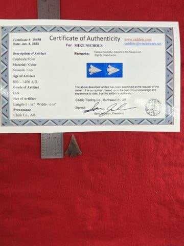 Please see picture for measurement. It is from Clark County Arkansas. It comes with a Sam Johnson Certificate of Authenticity. These artifacts are from multiple collections from around the United States. KEY WORDS: NATIVE AMERICAN INDIAN ARTIFACT ARTIFACTS ARROWHEAD ARROWHEADS MISSISSIPPIAN QUAPAW CADDO POTTERY COINS MORGAN DOLLAR PEACE DOLLAR SILVER COINS