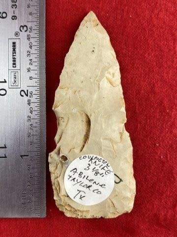 Please see picture for measurement. It is from Taylor County (Abilene) Texas. All artifacts came from the great state of Texas. Ex-Warren & Darla Suleske Collection, they are pictured in Who Who’s #12. They have collected wonderful arrowheads & artifacts for over 40 years! KEY WORDS: NATIVE AMERICAN INDIAN ARTIFACT ARTIFACTS ARROWHEAD ARROWHEADS MISSISSIPPIAN QUAPAW CADDO POTTERY COINS
