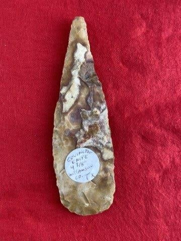Please see picture for measurement. All artifacts came from the great state of Texas. Ex-Warren & Darla Suleske Collection, they are pictured in Who Who’s #12. They have collected wonderful arrowheads & artifacts for over 40 years! KEY WORDS: NATIVE AMERICAN INDIAN ARTIFACT ARTIFACTS ARROWHEAD ARROWHEADS MISSISSIPPIAN QUAPAW CADDO POTTERY COINS