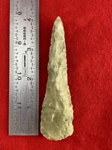 Please see picture for measurement. It is from Williamson County Texas. All artifacts came from the great state of Texas. Ex-Bill Arnold, Warren & Darla Suleske Collection, they are pictured in Who Who’s #12. They have collected wonderful arrowheads & artifacts for over 40 years! KEY WORDS: NATIVE AMERICAN INDIAN ARTIFACT ARTIFACTS ARROWHEAD ARROWHEADS MISSISSIPPIAN QUAPAW CADDO POTTERY COINS