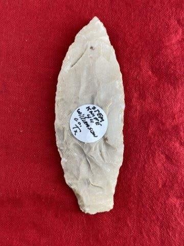 Please see picture for measurement.It is from Williamson County Texas. All artifacts came from the great state of Texas. Ex-Warren & Darla Suleske Collection, they are pictured in Who Who’s #12. They have collected wonderful arrowheads & artifacts for over 40 years! KEY WORDS: NATIVE AMERICAN INDIAN ARTIFACT ARTIFACTS ARROWHEAD ARROWHEADS MISSISSIPPIAN QUAPAW CADDO POTTERY COINS