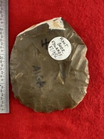 Please see picture for measurement. Made of Rootbeer Edwards Flint. All artifacts came from the great state of Texas. Ex-Warren & Darla Suleske Collection, they are pictured in Who Who’s #12. They have collected wonderful arrowheads & artifacts for over 40 years! KEY WORDS: NATIVE AMERICAN INDIAN ARTIFACT ARTIFACTS ARROWHEAD ARROWHEADS MISSISSIPPIAN QUAPAW CADDO POTTERY COINS