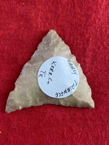 Please see picture for measurement. It is from Kerr County Texas. All artifacts came from the great state of Texas. Ex-Warren & Darla Suleske Collection, they are pictured in Who Who’s #12. They have collected wonderful arrowheads & artifacts for over 40 years! KEY WORDS: NATIVE AMERICAN INDIAN ARTIFACT ARTIFACTS ARROWHEAD ARROWHEADS MISSISSIPPIAN QUAPAW CADDO POTTERY COINS