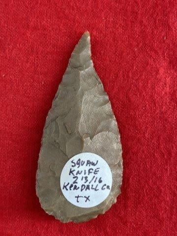 Please see picture for measurement. It is from Kendall County Texas. All artifacts came from the great state of Texas. Ex-Warren & Darla Suleske Collection, they are pictured in Who Who’s #12. They have collected wonderful arrowheads & artifacts for over 40 years! KEY WORDS: NATIVE AMERICAN INDIAN ARTIFACT ARTIFACTS ARROWHEAD ARROWHEADS MISSISSIPPIAN QUAPAW CADDO POTTERY COINS