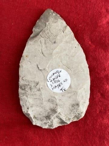 Please see picture for measurement. It is from Hayes County Texas. All artifacts came from the great state of Texas. Ex-Warren & Darla Suleske Collection, they are pictured in Who Who’s #12. They have collected wonderful arrowheads & artifacts for over 40 years! KEY WORDS: NATIVE AMERICAN INDIAN ARTIFACT ARTIFACTS ARROWHEAD ARROWHEADS MISSISSIPPIAN QUAPAW CADDO POTTERY COINS