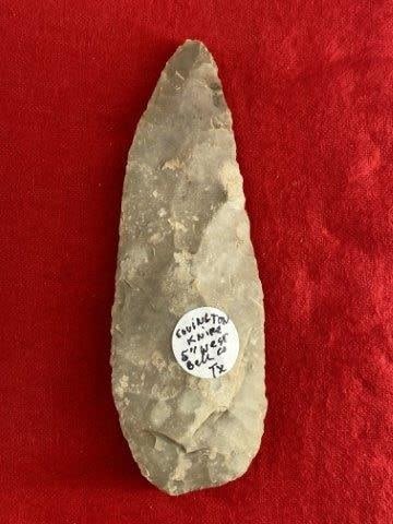 Please see picture for measurement. It is from West Bell County Texas. All artifacts came from the great state of Texas. Ex-Warren & Darla Suleske Collection, they are pictured in Who Who’s #12. They have collected wonderful arrowheads & artifacts for over 40 years! KEY WORDS: NATIVE AMERICAN INDIAN ARTIFACT ARTIFACTS ARROWHEAD ARROWHEADS MISSISSIPPIAN QUAPAW CADDO POTTERY COINS