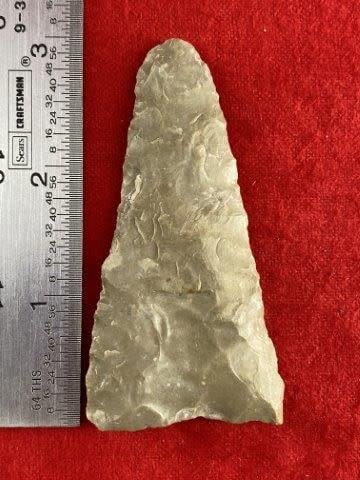 Please see picture for measurement. It is from Travis County Texas. All artifacts came from the great state of Texas. Ex-Warren & Darla Suleske Collection, they are pictured in Who Who’s #12. They have collected wonderful arrowheads & artifacts for over 40 years! KEY WORDS: NATIVE AMERICAN INDIAN ARTIFACT ARTIFACTS ARROWHEAD ARROWHEADS MISSISSIPPIAN QUAPAW CADDO POTTERY COINS