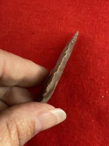 Please see picture for measurement.Found by Albert Schubge between 1885 & 1928. All artifacts came from the great state of Texas. Ex-Albert Schubge, Warren & Darla Suleske Collection, they are pictured in Who Who’s #12. They have collected wonderful arrowheads & artifacts for over 40 years! KEY WORDS: NATIVE AMERICAN INDIAN ARTIFACT ARTIFACTS ARROWHEAD ARROWHEADS MISSISSIPPIAN QUAPAW CADDO POTTERY COINS
