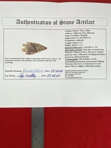Please see picture for measurement. It is from Coryell County Texas. It comes with a Roy Motley Certificate of Authenticity. These artifacts are from multiple collections from around the United States. KEY WORDS: NATIVE AMERICAN INDIAN ARTIFACT ARTIFACTS ARROWHEAD ARROWHEADS MISSISSIPPIAN QUAPAW CADDO POTTERY COINS MORGAN DOLLAR PEACE DOLLAR SILVER COINS