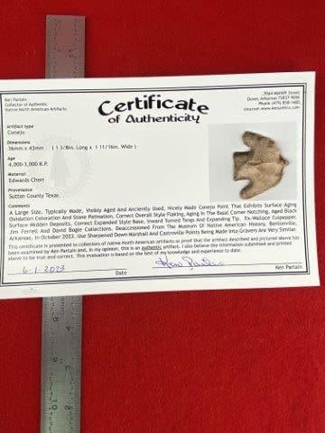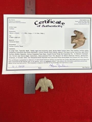Please see picture for measurement. It is from Sutton County Texas. It comes with a Ken Partain Certificate of Authenticity. These artifacts are from multiple collections from around the United States. KEY WORDS: NATIVE AMERICAN INDIAN ARTIFACT ARTIFACTS ARROWHEAD ARROWHEADS MISSISSIPPIAN QUAPAW CADDO POTTERY COINS MORGAN DOLLAR PEACE DOLLAR SILVER COINS
