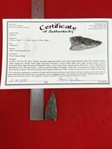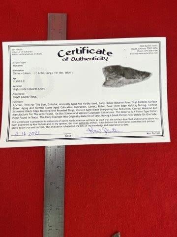 Please see picture for measurement. It is from Travis County Texas. It comes with a Ken Partain Certificate of Authenticity. These artifacts are from multiple collections from around the United States. KEY WORDS: NATIVE AMERICAN INDIAN ARTIFACT ARTIFACTS ARROWHEAD ARROWHEADS MISSISSIPPIAN QUAPAW CADDO POTTERY COINS MORGAN DOLLAR PEACE DOLLAR SILVER COINS