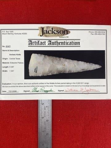 Please see picture for measurement. It comes with a Jackson Certificate of Authentication. It is from Central Texas. These artifacts are from multiple collections from around the United States. KEY WORDS: NATIVE AMERICAN INDIAN ARTIFACT ARTIFACTS ARROWHEAD ARROWHEADS MISSISSIPPIAN QUAPAW CADDO POTTERY COINS MORGAN DOLLAR PEACE DOLLAR SILVER COINS