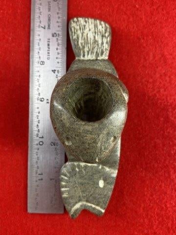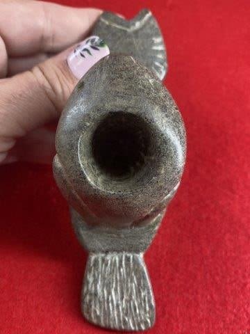 Frog & fish Stone Effigy Pipe Indian Artifact Arrowhead