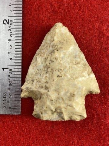 Please see picture for measurement. This arrowhead is from the James Evans Estate Collection of Vandalia, Missouri. KEY WORDS: NATIVE AMERICAN INDIAN ARTIFACT ARTIFACTS ARROWHEAD ARROWHEADS MISSISSIPPIAN QUAPAW CADDO POTTERY COINS MORGAN DOLLAR PEACE DOLLAR SILVER COINS