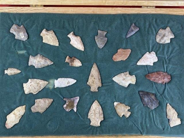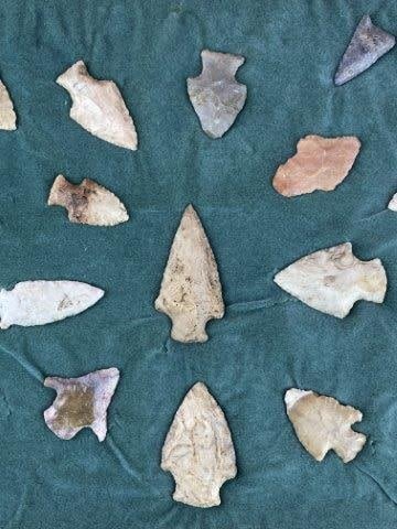 Please see picture for measurement. This group of arrowheads are from the James Evans Estate Collection of Vandalia, Missouri. KEY WORDS: NATIVE AMERICAN INDIAN ARTIFACT ARTIFACTS ARROWHEAD ARROWHEADS MISSISSIPPIAN QUAPAW CADDO POTTERY COINS MORGAN DOLLAR PEACE DOLLAR SILVER COINS