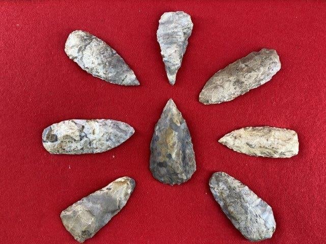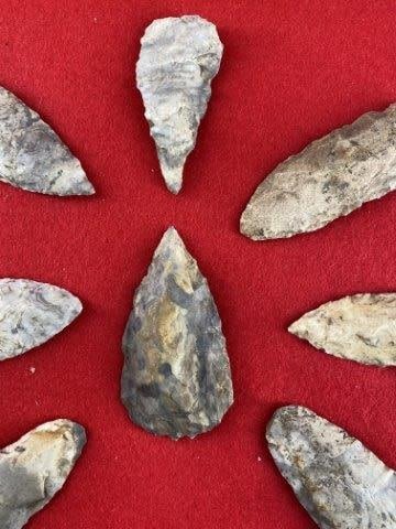 Please see picture for measurement. This group of arrowheads are from the James Evans Estate Collection of Vandalia, Missouri. KEY WORDS: NATIVE AMERICAN INDIAN ARTIFACT ARTIFACTS ARROWHEAD ARROWHEADS MISSISSIPPIAN QUAPAW CADDO POTTERY COINS MORGAN DOLLAR PEACE DOLLAR SILVER COINS