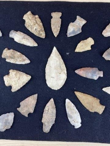 Please see picture for measurement. This group of arrowheads are from the James Evans Estate Collection of Vandalia, Missouri. KEY WORDS: NATIVE AMERICAN INDIAN ARTIFACT ARTIFACTS ARROWHEAD ARROWHEADS MISSISSIPPIAN QUAPAW CADDO POTTERY COINS MORGAN DOLLAR PEACE DOLLAR SILVER COINS