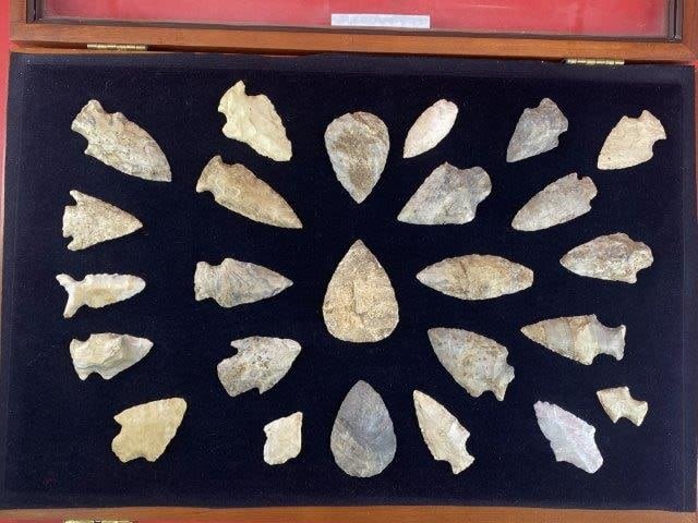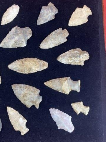 Please see picture for measurement. This group of arrowheads are from the James Evans Estate Collection of Vandalia, Missouri. KEY WORDS: NATIVE AMERICAN INDIAN ARTIFACT ARTIFACTS ARROWHEAD ARROWHEADS MISSISSIPPIAN QUAPAW CADDO POTTERY COINS MORGAN DOLLAR PEACE DOLLAR SILVER COINS