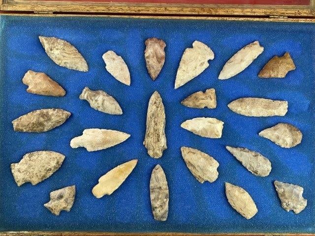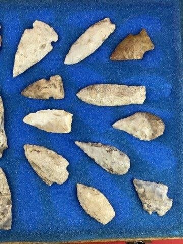 Please see picture for measurement. This group of arrowheads are from the James Evans Estate Collection of Vandalia, Missouri. KEY WORDS: NATIVE AMERICAN INDIAN ARTIFACT ARTIFACTS ARROWHEAD ARROWHEADS MISSISSIPPIAN QUAPAW CADDO POTTERY COINS MORGAN DOLLAR PEACE DOLLAR SILVER COINS