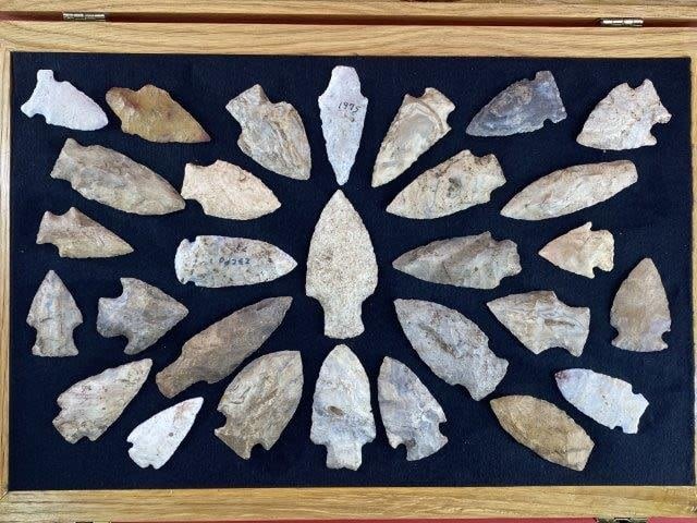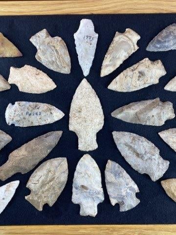 Please see picture for measurement. This group of arrowheads are from the James Evans Estate Collection of Vandalia, Missouri. KEY WORDS: NATIVE AMERICAN INDIAN ARTIFACT ARTIFACTS ARROWHEAD ARROWHEADS MISSISSIPPIAN QUAPAW CADDO POTTERY COINS MORGAN DOLLAR PEACE DOLLAR SILVER COINS