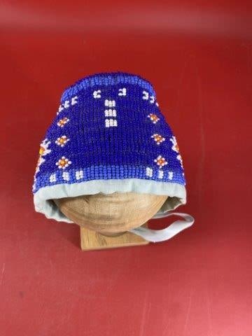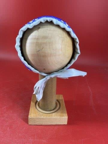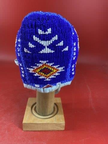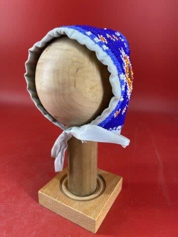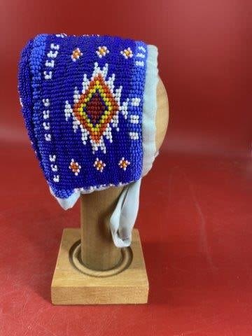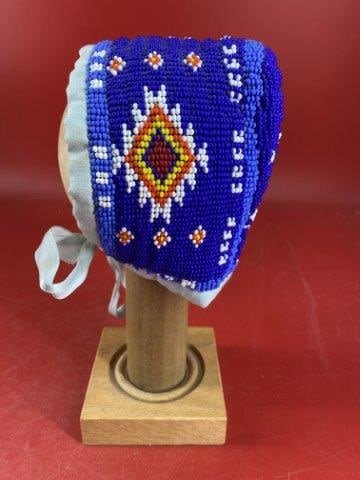 Beaded Baby Bonnet w/ Stand Indian Artifact Arrowhead