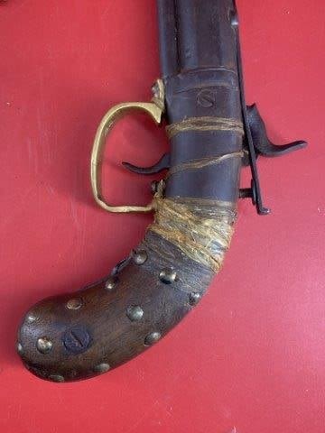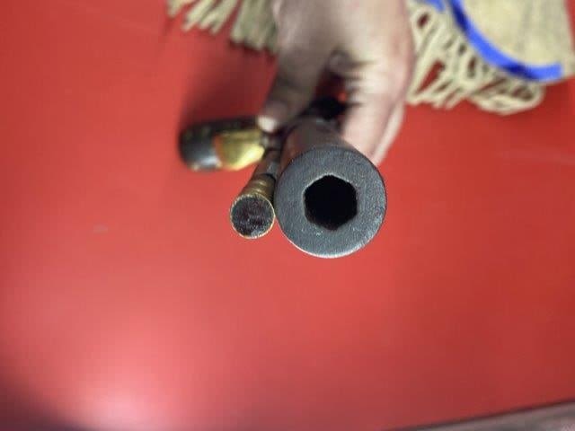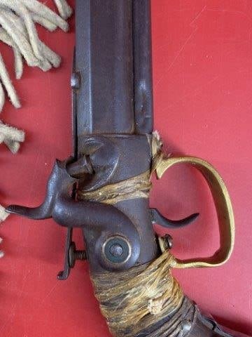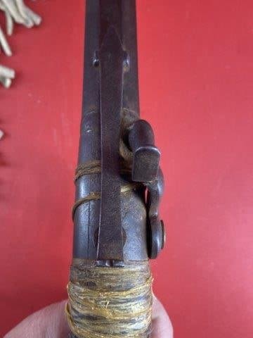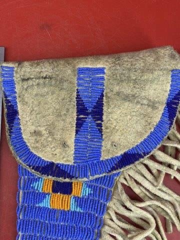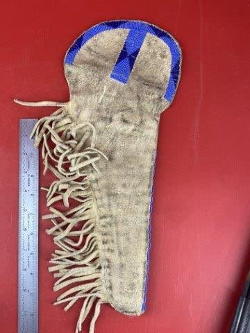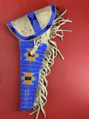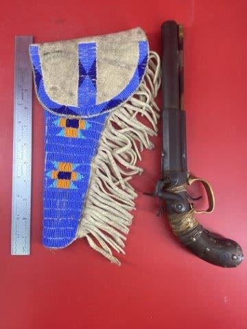 Wall Hanger Tacked Pistol w/ beaded holster Indian Artifact Arrowhead