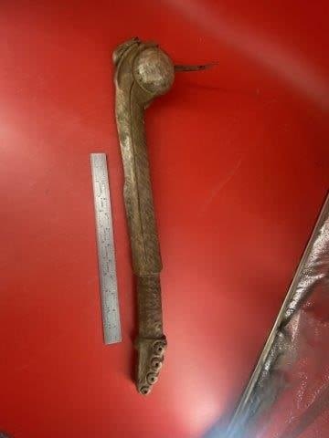 Wooden War Club w/ tacks Indian Artifact Arrowhead