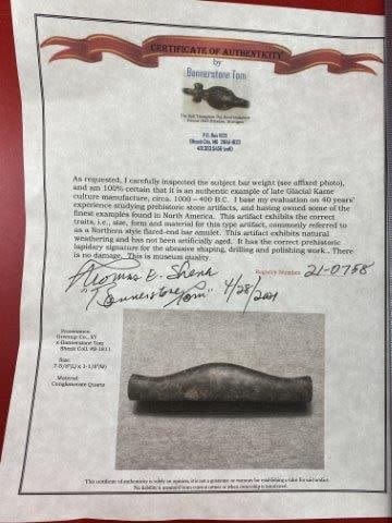 Please see picture for measurement. It is from Greenup County Kentucky. Ex- Tom Shenk Collection. It comes with a Bannerstone Tom Certificate of Authenticity. These artifacts are from multiple collections from around the United States. KEY WORDS: NATIVE AMERICAN INDIAN ARTIFACT ARTIFACTS ARROWHEAD ARROWHEADS MISSISSIPPIAN QUAPAW CADDO POTTERY COINS MORGAN DOLLAR PEACE DOLLAR SILVER COINS