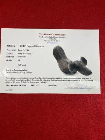 Please see picture for measurement. It is from Ross County Ohio. ex- Matt Moeller, Kraig Phillips Collection. It comes with a Tony Putty Certificate of Authenticity. These artifacts are from multiple collections from around the United States. KEY WORDS: NATIVE AMERICAN INDIAN ARTIFACT ARTIFACTS ARROWHEAD ARROWHEADS MISSISSIPPIAN QUAPAW CADDO POTTERY COINS MORGAN DOLLAR PEACE DOLLAR SILVER COINS