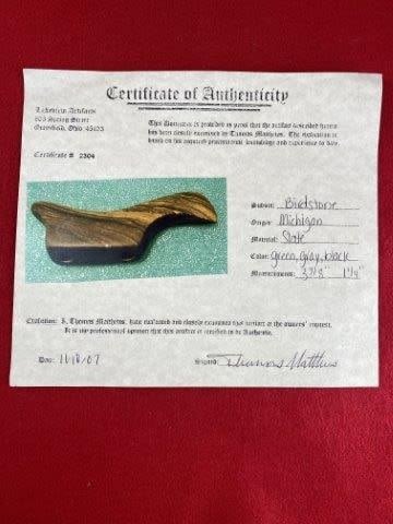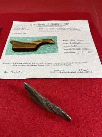 Please see picture for measurement. It is from Michigan. It comes with a Thomas Matthews Certificate of Authenticity. These artifacts are from multiple collections from around the United States. KEY WORDS: NATIVE AMERICAN INDIAN ARTIFACT ARTIFACTS ARROWHEAD ARROWHEADS MISSISSIPPIAN QUAPAW CADDO POTTERY COINS MORGAN DOLLAR PEACE DOLLAR SILVER COINS