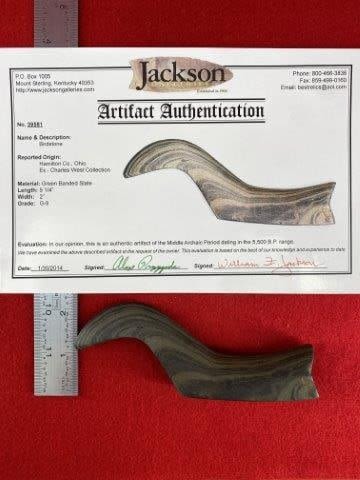 Please see picture for measurement. It is from Hamilton County Ohio. Ex- Charles West Collection. It comes with a Jackson Certificate of Authenticity.These artifacts are from multiple collections from around the United States. KEY WORDS: NATIVE AMERICAN INDIAN ARTIFACT ARTIFACTS ARROWHEAD ARROWHEADS MISSISSIPPIAN QUAPAW CADDO POTTERY COINS MORGAN DOLLAR PEACE DOLLAR SILVER COINS