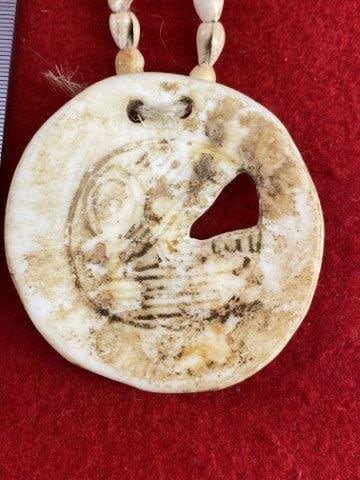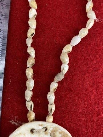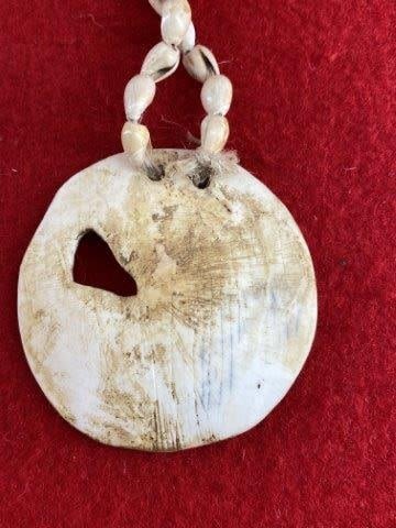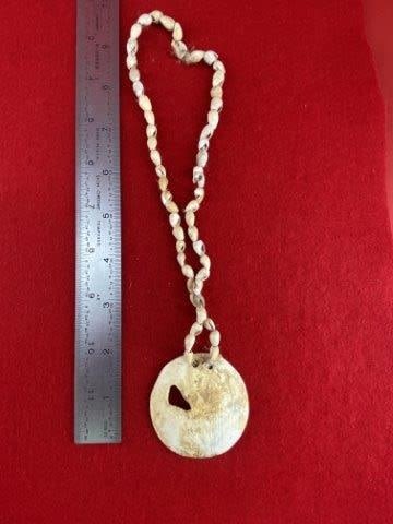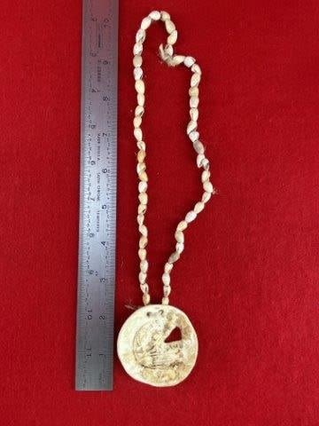 Engraved Shell Pendant with Shell Beads Indian Artifact Arrowhead