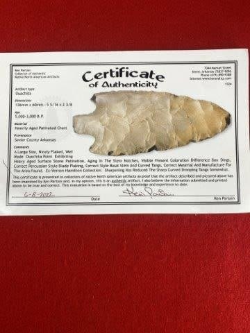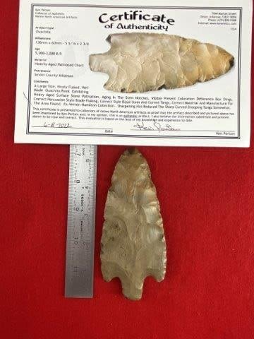 Please see picture for measurement. It is from Sevier County Arkansas. ex- Vernon Hamilton Collection. It comes with a Ken Partain Certificate of Authenticity. These artifacts are from multiple collections from around the United States. KEY WORDS: NATIVE AMERICAN INDIAN ARTIFACT ARTIFACTS ARROWHEAD ARROWHEADS MISSISSIPPIAN QUAPAW CADDO POTTERY COINS MORGAN DOLLAR PEACE DOLLAR SILVER COINS