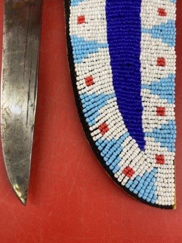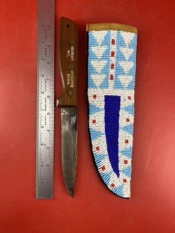 Herter's Incorporated Improved Bowie Knife with Beaded Sheath Indian Artifact Arrowhead