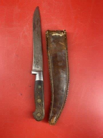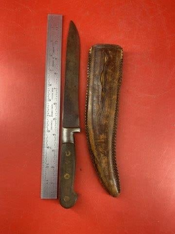 Knife with Leather Sheath Indian Artifact Arrowhead