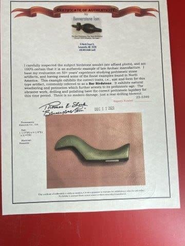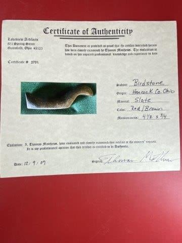 Please see picture for measurement.It is from Hancock County Ohio. It comes with a Thomas Matthews & Bannerstone Tom Certificate of Authenticity. These artifacts are from multiple collections from around the United States. KEY WORDS: NATIVE AMERICAN INDIAN ARTIFACT ARTIFACTS ARROWHEAD ARROWHEADS MISSISSIPPIAN QUAPAW CADDO POTTERY COINS MORGAN DOLLAR PEACE DOLLAR SILVER COINS