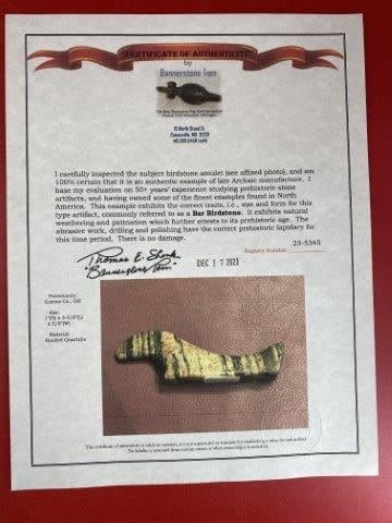 Please see picture for measurement. It is from Greene County Ohio. It comes with a Bannerstone Tom Certificate of Authenticity. These artifacts are from multiple collections from around the United States. KEY WORDS: NATIVE AMERICAN INDIAN ARTIFACT ARTIFACTS ARROWHEAD ARROWHEADS MISSISSIPPIAN QUAPAW CADDO POTTERY COINS MORGAN DOLLAR PEACE DOLLAR SILVER COINS