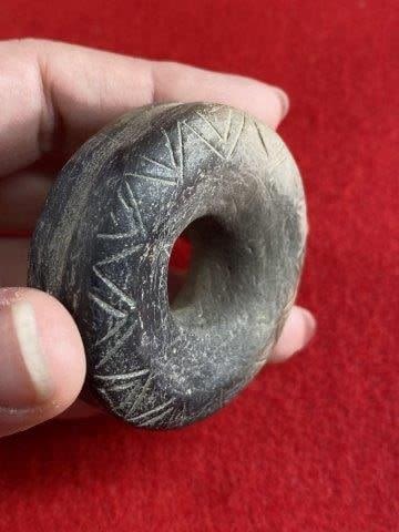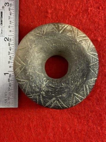 Engraved Pottery Ear Spool Indian Artifact Arrowhead