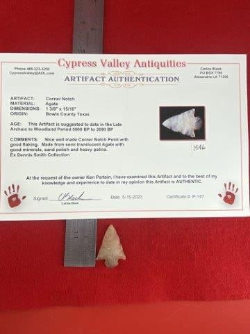 Please see picture for measurement. It comes from Bowie County Texas. ex- Dennis Smith Collection. It comes with a Carlos Black Certificate of Authenticity. These artifacts are from multiple collections from around the United States. KEY WORDS: NATIVE AMERICAN INDIAN ARTIFACT ARTIFACTS ARROWHEAD ARROWHEADS MISSISSIPPIAN QUAPAW CADDO POTTERY COINS MORGAN DOLLAR PEACE DOLLAR SILVER COINS