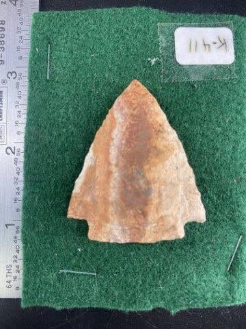 Please see picture for measurement. These artifacts are from The Leonard & Vivian Nelson Collection. They were lifelong farmers with ancesteral roots in Dekalb County Illinois. Leonard & Vivian worked all of their lives farming & they collected these wonderful artifacts over their 100 years of life. KEY WORDS: NATIVE AMERICAN INDIAN ARTIFACT ARTIFACTS ARROWHEAD ARROWHEADS MISSISSIPPIAN QUAPAW CADDO POTTERY COINS MORGAN DOLLAR PEACE DOLLAR SILVER COINS