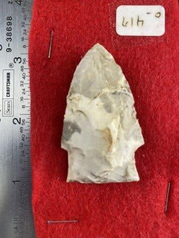 Please see picture for measurement. These artifacts are from The Leonard & Vivian Nelson Collection. They were lifelong farmers with ancesteral roots in Dekalb County Illinois. Leonard & Vivian worked all of their lives farming & they collected these wonderful artifacts over their 100 years of life. KEY WORDS: NATIVE AMERICAN INDIAN ARTIFACT ARTIFACTS ARROWHEAD ARROWHEADS MISSISSIPPIAN QUAPAW CADDO POTTERY COINS MORGAN DOLLAR PEACE DOLLAR SILVER COINS