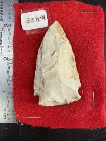Please see picture for measurement. These artifacts are from The Leonard & Vivian Nelson Collection. They were lifelong farmers with ancesteral roots in Dekalb County Illinois. Leonard & Vivian worked all of their lives farming & they collected these wonderful artifacts over their 100 years of life. KEY WORDS: NATIVE AMERICAN INDIAN ARTIFACT ARTIFACTS ARROWHEAD ARROWHEADS MISSISSIPPIAN QUAPAW CADDO POTTERY COINS MORGAN DOLLAR PEACE DOLLAR SILVER COINS
