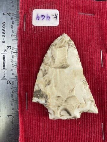 Please see picture for measurement. These artifacts are from The Leonard & Vivian Nelson Collection. They were lifelong farmers with ancesteral roots in Dekalb County Illinois. Leonard & Vivian worked all of their lives farming & they collected these wonderful artifacts over their 100 years of life. KEY WORDS: NATIVE AMERICAN INDIAN ARTIFACT ARTIFACTS ARROWHEAD ARROWHEADS MISSISSIPPIAN QUAPAW CADDO POTTERY COINS MORGAN DOLLAR PEACE DOLLAR SILVER COINS