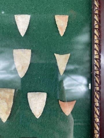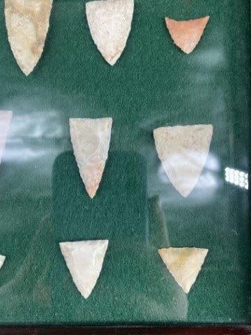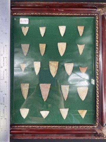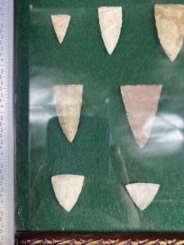 Frame is included. Please see picture for measurement. These artifacts are from The Leonard & Vivian Nelson Collection. They were lifelong farmers with ancesteral roots in Dekalb County Illinois. Leonard & Vivian worked all of their lives farming & they collected these wonderful artifacts over their 100 years of life. KEY WORDS: NATIVE AMERICAN INDIAN ARTIFACT ARTIFACTS ARROWHEAD ARROWHEADS MISSISSIPPIAN QUAPAW CADDO POTTERY COINS MORGAN DOLLAR PEACE DOLLAR SILVER COINS