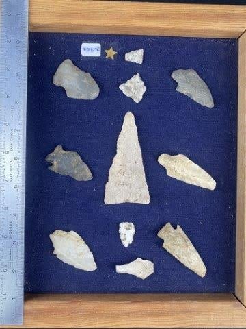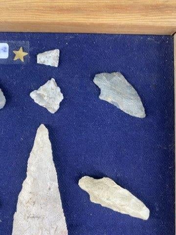 Frame is included. Please see picture for measurement. These artifacts are from The Leonard & Vivian Nelson Collection. They were lifelong farmers with ancesteral roots in Dekalb County Illinois. Leonard & Vivian worked all of their lives farming & they collected these wonderful artifacts over their 100 years of life. KEY WORDS: NATIVE AMERICAN INDIAN ARTIFACT ARTIFACTS ARROWHEAD ARROWHEADS MISSISSIPPIAN QUAPAW CADDO POTTERY COINS MORGAN DOLLAR PEACE DOLLAR SILVER COINS