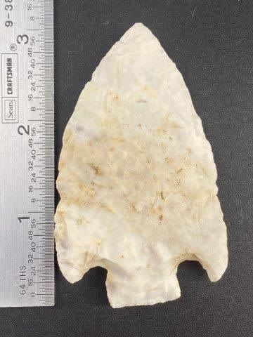 Please see picture for measurement. These artifacts are from The Leonard & Vivian Nelson Collection. They were lifelong farmers with ancesteral roots in Dekalb County Illinois. Leonard & Vivian worked all of their lives farming & they collected these wonderful artifacts over their 100 years of life. KEY WORDS: NATIVE AMERICAN INDIAN ARTIFACT ARTIFACTS ARROWHEAD ARROWHEADS MISSISSIPPIAN QUAPAW CADDO POTTERY COINS MORGAN DOLLAR PEACE DOLLAR SILVER COINS